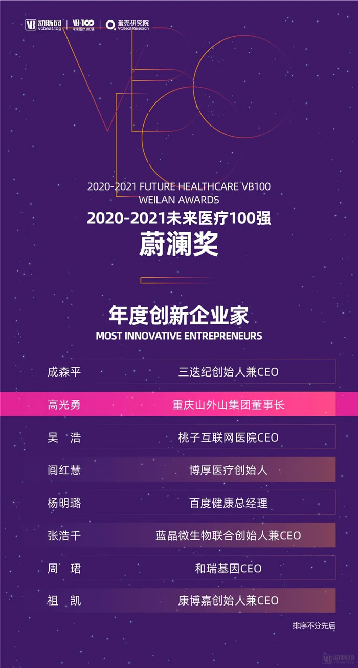 第五屆未來醫(yī)療100強-年度創(chuàng)新企業(yè)家頒獎儀式